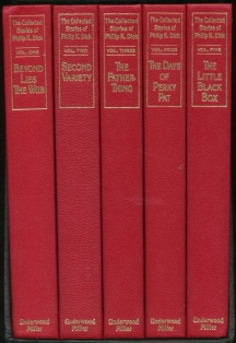 And finally, there's the big deal. Yes, you can find 'The Collected Stories of Philip K. Dick' repackaged as about ten million movie adaptation titles. You can find the original paperback release. And, if you're very lucky, or very compulsive, you can find the Underwood/Miller original hardcover collection. Five volumes, no slipcase, but built to last. It was a total joy to break out the books and read 'The Minority Report' before I saw the execrable Spielberg smear of Dick's story. What you come to realize is that though Dick lead his life as something of a hack who cranked out books like the man on drugs that he in fact was, he was also a passionate artist who cared deeply about literature and had very strong ideas about science fiction --what it should do, what it could do and was being done. If you read the stories here, I can guarantee you that you'll have read plot summaries for about twenty movies to be made in the next fifteen years. And that doesn't even begin to factor in the news stories in years to come that Dick first wrote as fiction. Fiction into reality. As far as the authors I like, it's a trend that I'd prefer to see stopped in its tracks.