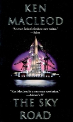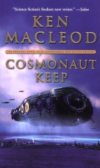 On the other side of the spectrum is Ken Macleod, also Scottish, socialist and a science fiction writer. Other than that, no similarity. Well, the name, but -- Ken Macleod has been on my radar since the US release of 'The Stone Canal'. The 'Fall Revolution' sequence of novels should be read in the proper order if you're going to have a hope of understanding what's going on, so here you go: 'The Star Fraction' is first, with the birth of world chaos and an online AI, followed by 'The Stone Canal', 'The Cassini Division' and finishing up with an elegiac 'The Sky Road'. Ken Macleod writes books that are so packed with ideas, reading one is like picking up a handful of needles. He'll start in the recent past, with bullshitting socialist wannabes hanging about and philosophizing while getting hornswoggled. Before you know it, they're building working versions of the traditional flying saucers ("gravity skiffs") and popping off to live in harmony on an alien earth with Bigfoot ("gigants") and Grey Aliens ("saurs").