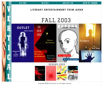 In the first place, the web site is fairly nicely designed. It loads quickly, at least. But the Vertical -Inc strategy is nothing less than brilliant, especially in these uncertain financial and reading times. Vertical-Inc's plan is to translate and publish the best of the most popular Japanese fiction. Here's what they say on their website: