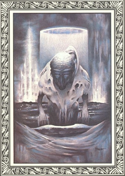 This illustration by Stephen Fabian from the fontispiece of 'The Dream of X' by William Hope Hodgson is one of many gorgeous color plates from this 1977 Donald M. Grant Publication. |