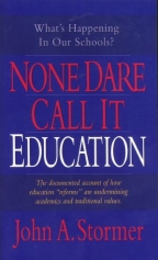 A quick search on the Internet located 'None Dare Call It Education'. It's a $21.95 hardcover book that had been dropped on my porch in a paperback format that would probably steal $6.99 from somebody who wanted to pay for it. Free. On my porch. Somebody is trying to send me a message. Comments in the online bookseller database for the book range from 'Religious twaddle' to 'Extremely well-documented book!' My inclination is to side with the former evaluation, especially on the evidence stuffed inside the book -- a huge foldout chart which, while folded shows only one part of its title:
