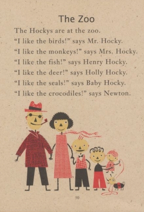 You see, it's possible for an adult to enjoy a very, very simple book. But I don't want all books to be that simple. A great book for those with very, very young kids may in fact be the endpoint of this literary evolution. Now, I came to Lane Smith's 'The Happy Hockey Family' when the boys were very small. We'd bought and greatly enjoyed Jon Scieszka's 'The Stinky Cheese Man', and loved both the narrative and the illustrations. It took me about two seconds in the bookstore to decide that 'The Happy Hockey Family' was well worth the purchase. Let's call it a collection of short stories. I'm going to run a couple of pages here -- one whole short story -- to sell you this book.